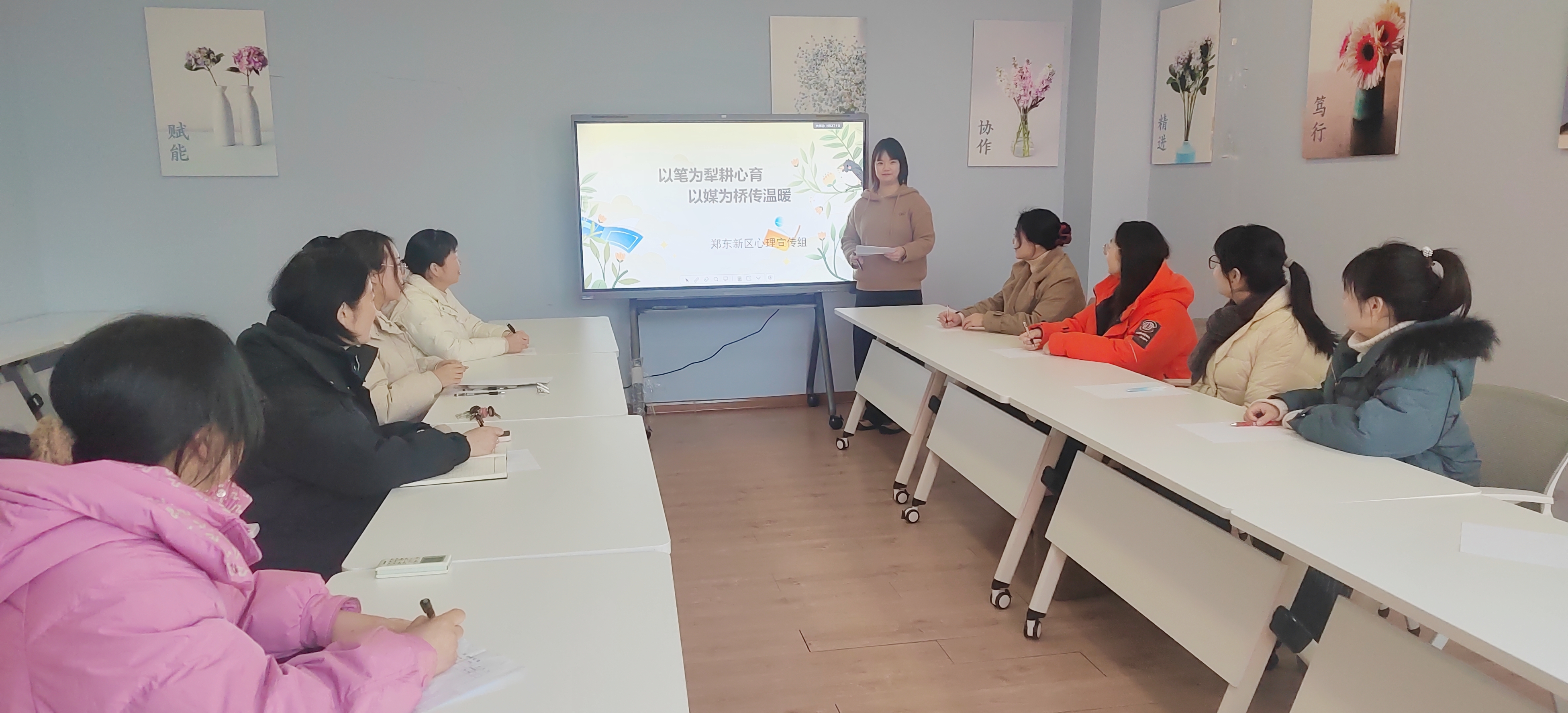 随后,郑东新区教研室中小学心理健康教育教研员王娟老师结合区域心理健康教育工作的整体部署,对心理宣传组工作提出具体要求。她强调,心理宣传工作要紧扣未成年人心理健康成长与教师发展需求,突出专业性、针对性和趣味性,让心理健康知识真正走进校园、走进家庭;要强化团队协作,凝聚宣传合力,打造有温度、有影响力的心理宣传品牌;要注重工作实效,将宣传工作与心理服务、心理干预相结合,切实筑牢未成年人心理健康防护网。