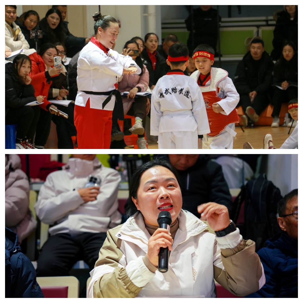 许昌市建安区镜水路小学董会晓老师执教《跆拳道腿法--推踢学练、步伐腿法组合练习及攻防技战术模拟实战》、许昌市体育兼职教研员徐虹艳进行点评