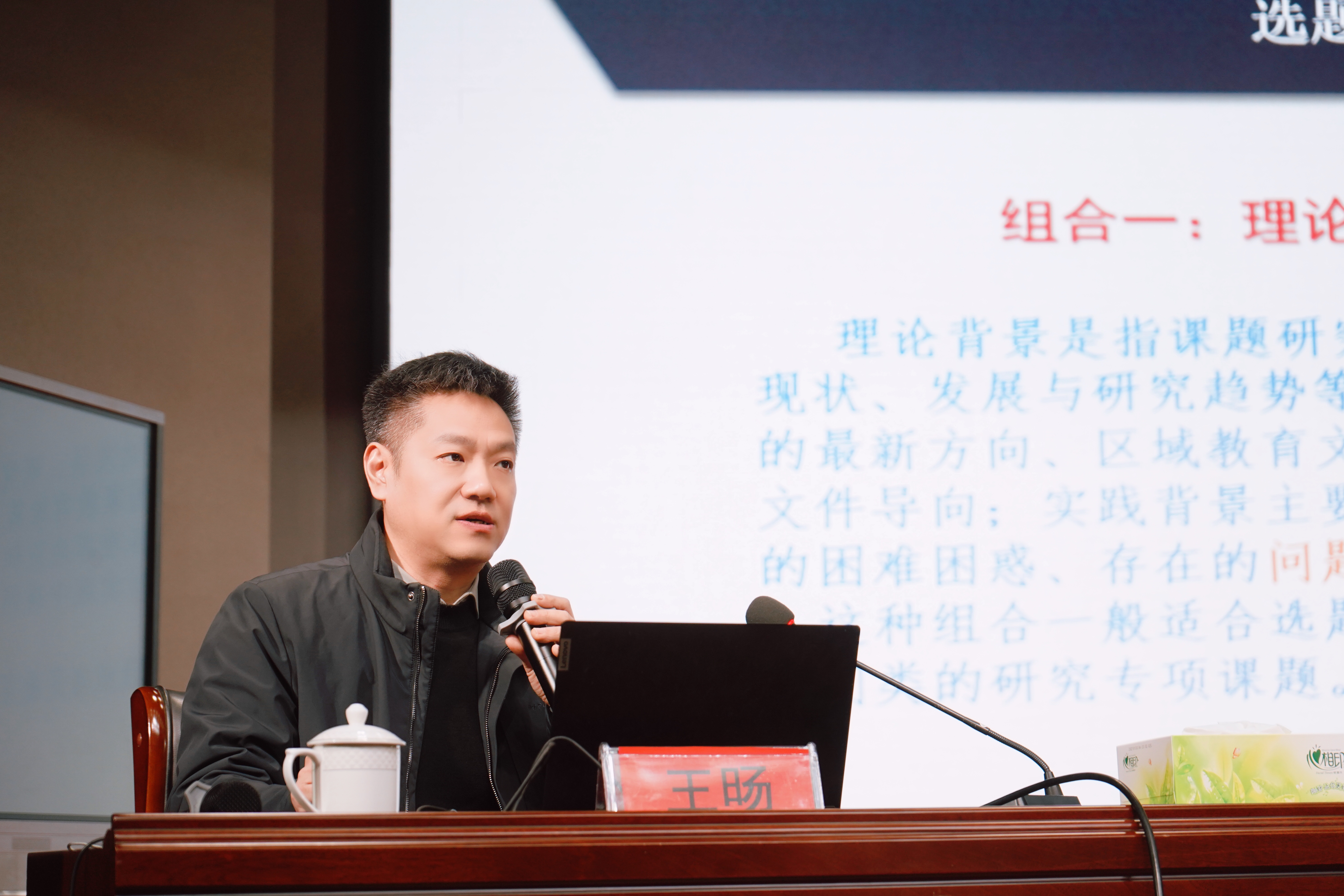 随后,王旸主任以《中小学教科研选题与申报技巧》为题开展专题培训,为参训教师带来了一场干货满满的学术盛宴。培训中,他围绕课题研究全流程,从选题原则与标准、题目设计技巧、课题来源挖掘等基础环节入手,层层深入解析立项申报书的撰写要点。针对选题依据、核心概念界定、研究现状综述、研究目标与内容、研究方法与思路、研究计划制定等关键模块,王旸结合典型案例逐一拆解,用通俗的语言梳理逻辑框架,用专业的视角点拨撰写误区,为教师们提供了可落地、可操作的实践指南。整场培训条理清晰、重点突出,参训教师专注聆听、认真记录,不时点头赞许,纷纷表示培训精准破解了课题申报中的困惑,理清了研究思路,为后续申报工作注入了信心。