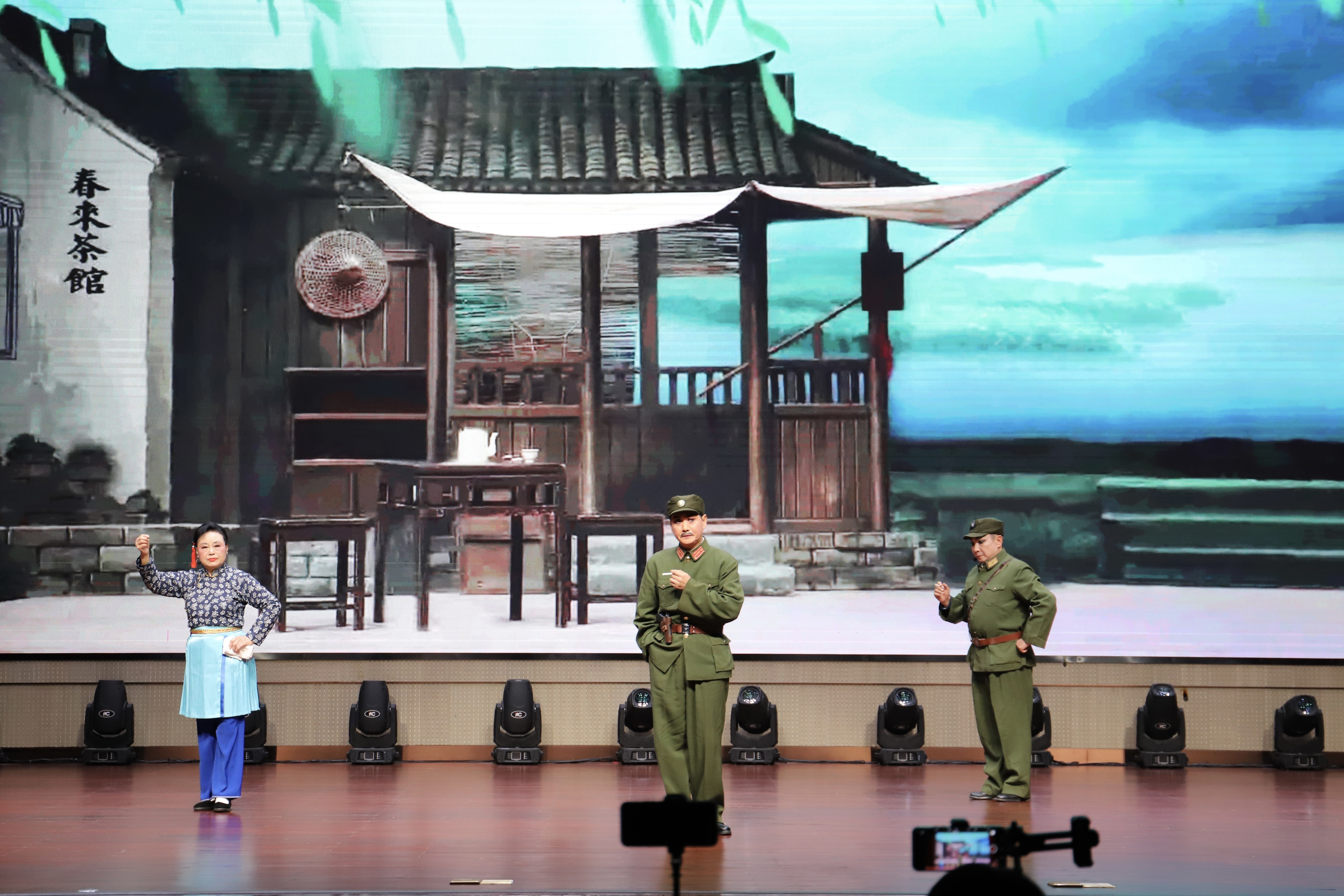 第一篇章《红色经典》演绎了《江姐·红梅赞》、《杜鹃山·家住安源》、《红灯记·痛说革命家史》等经典选段。演员们情感饱满、表演真切,其中多位公益课学员的亮相,展现出从零基础到舞台表演的显著成长。京胡演奏家们的伴奏更添艺术感染力,红色旋律激昂回荡,现场气氛热烈。