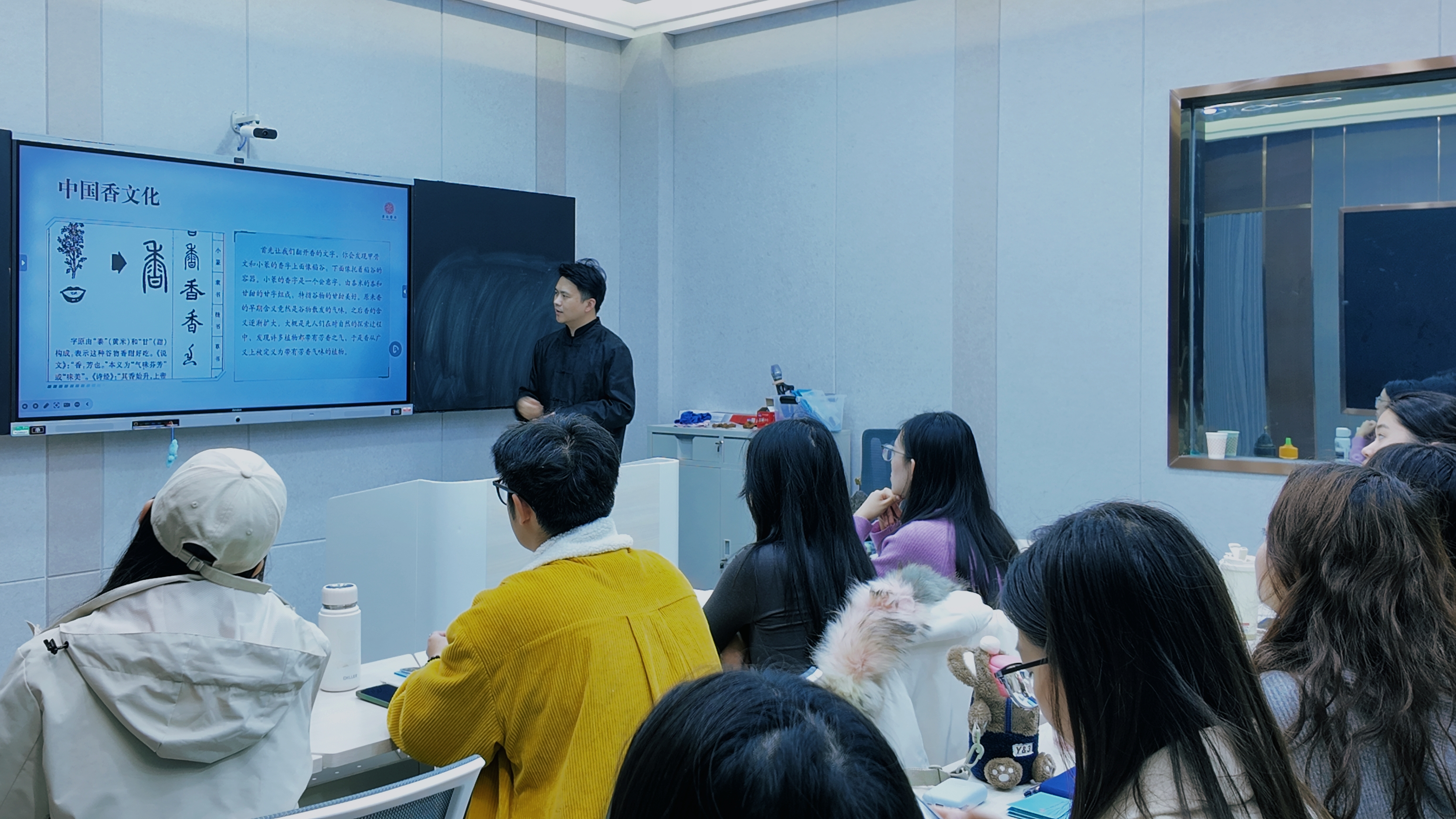 11月6日,郑州航空工业管理学院文法学院研究生课堂上香气萦绕,一场别开生面的非遗制香课程在此开课。本次活动是郑东新区文化馆与郑州航空工业管理学院深化“非遗进校园”合作的重要举措,特别邀请了郑东新区市级非遗项目“传统香制作技艺”传承人曹鹏飞老师走进校园,带领研究生们沉浸式体验中国香文化的独特魅力,共同解锁千年香韵背后的深邃密码。