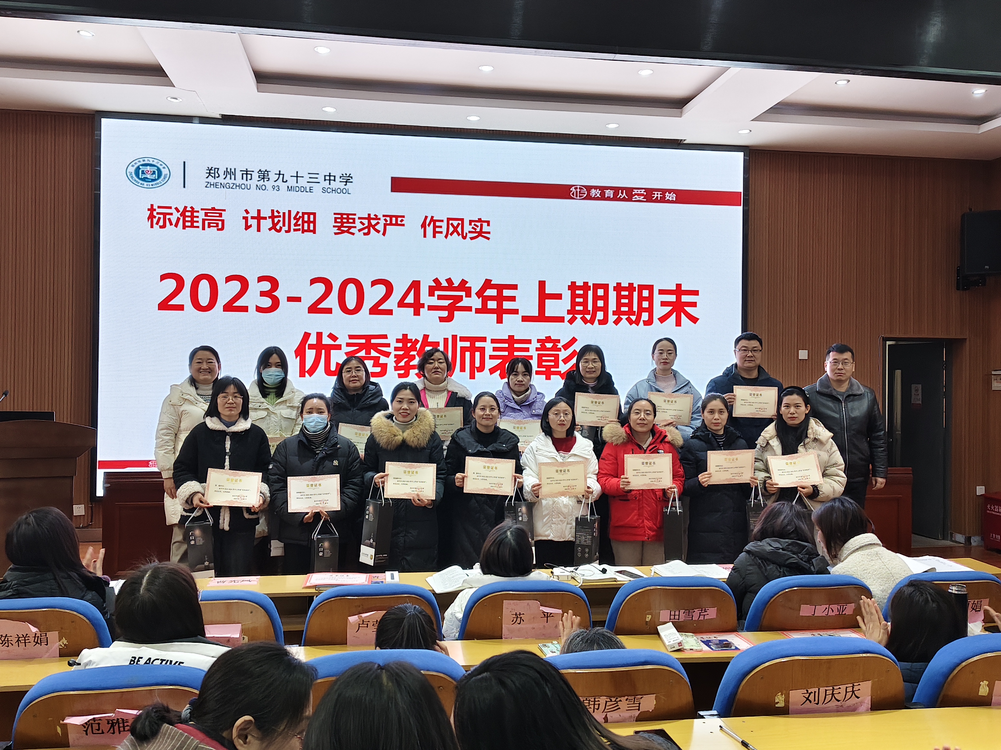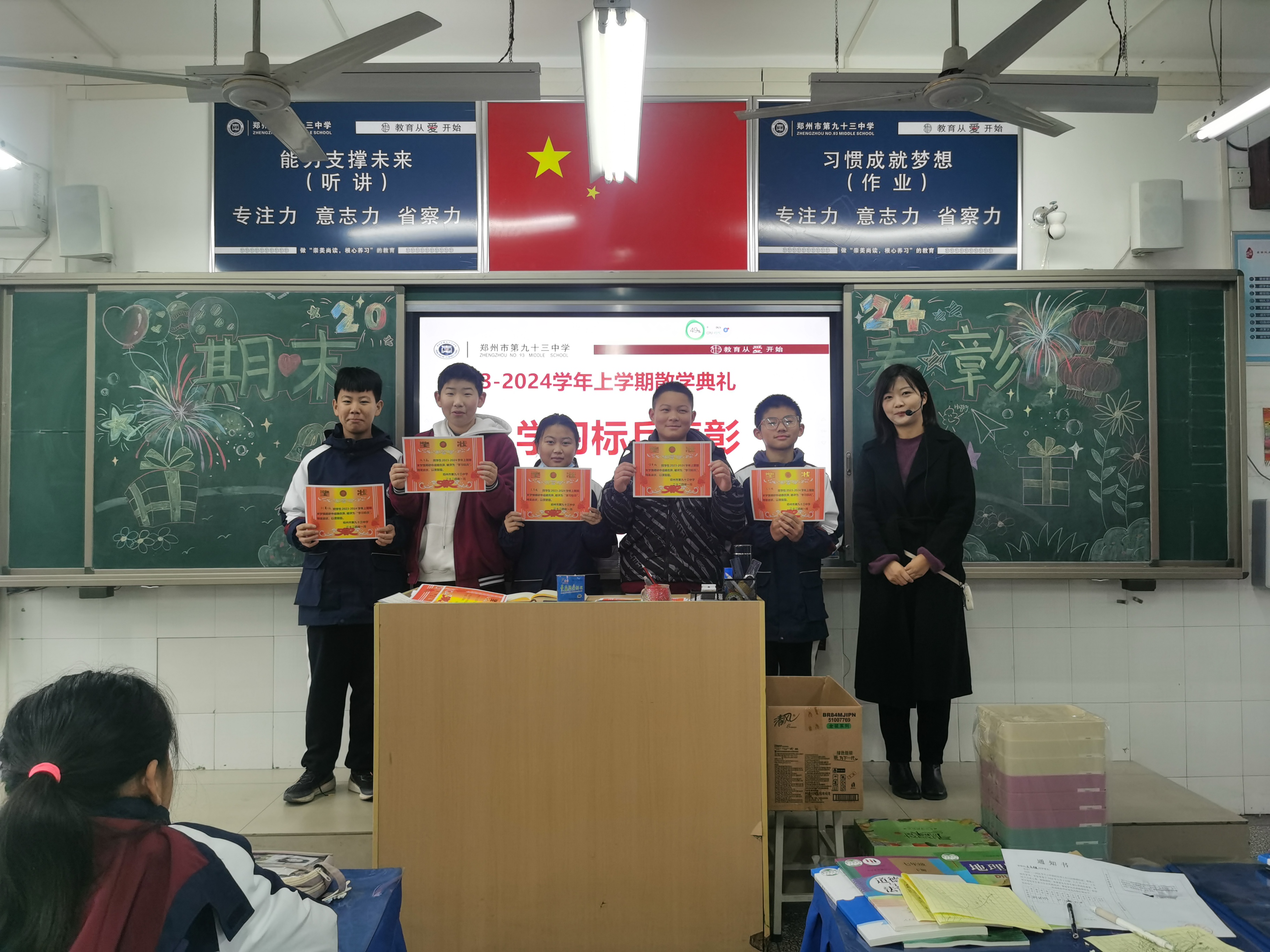 一段时光,一份收获,一路欢笑,一路成长。为更好地总结一学期的校园生活,及时表彰在各方面表现出色的优秀教师、优秀学生和优秀家长,调动全体师生的工作学习积极性,给这个忙碌充实的学期画上圆满的句号,同时开启一个安全、充实、有意义的寒假,2024年1月31日上午,郑州市第九十三中学举办了2023—2024学年第一学期散学典礼。散学典礼由办公室主任孙书军主持。
