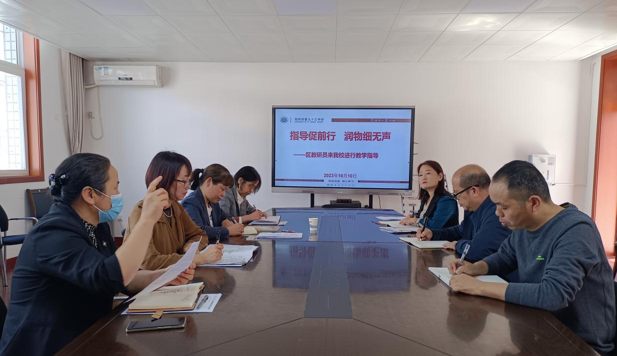 2023年10月10日上午,郑东新区教研室语文学科教研员巩凤华、化学学科教研员李珍、地理学科教研员李慧芳、历史学科教研员于永仙四人走进郑州市第九十三中学,深入课堂进行教学指导,学校领导全程参与,相关学科老师参加听评课活动。