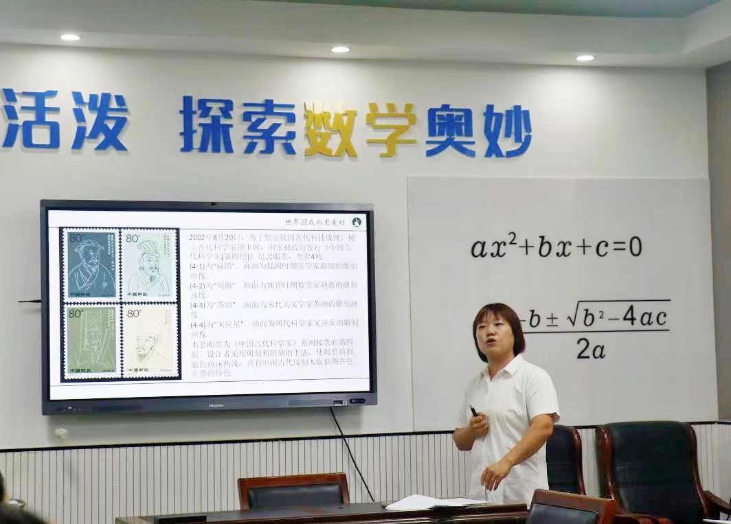 2022年9月23日上午,郑州市郑东新区白沙中学“您好!数学家”沙龙组全体成员齐聚数学学科室,共同研究并探讨了数学家刘徽的故事,本次活动的分享教师是马玲老师,白沙中学校长王纪奎全程参与。
