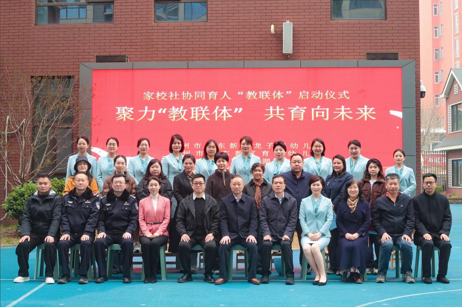 随后,在全场倒计时声中,与会领导、共建单位代表、焦可心园长共同为郑东新区龙子湖幼儿园、育翔幼儿园、龙子湖第二幼儿园家校社协同育人“教联体”揭牌,这标志着一个跨领域、多层次的“教联体”资源网络正式建立。