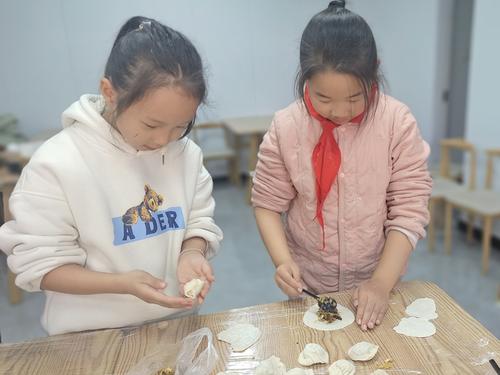随后,学生们在老师的指导下,学习如何包饺子。大家分工明确,配合默契,有的揉面,有的擀皮,有的包馅,忙得不亦乐乎。在孩子们的巧手之下,一个个形态各异的饺子诞生了,活动现场洋溢着欢声笑语。