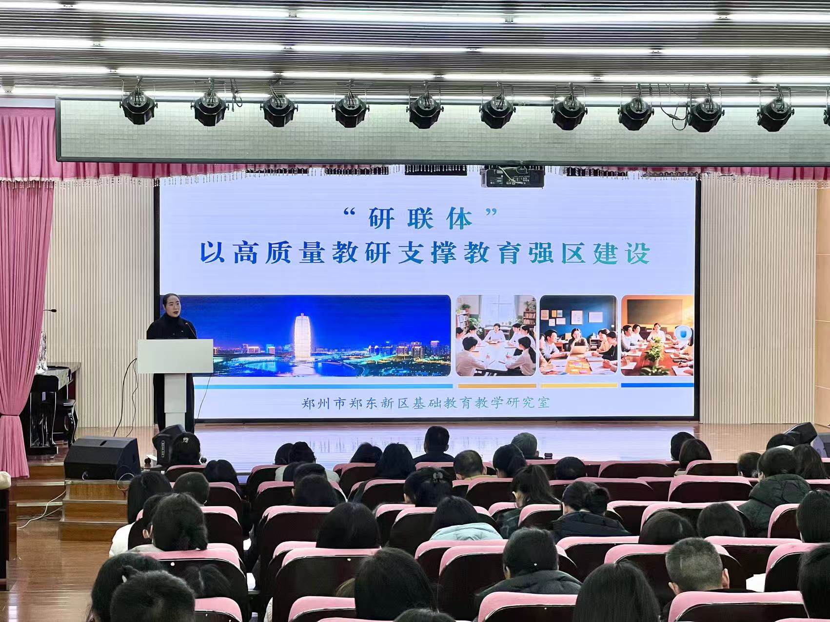 为了积极发挥郑东新区区域“研联体”教研在推进课程改革、指导教学实践、促进教师发展、服务教育决策等方面的关键支撑作用,郑东新区基础教育教学研究室于2026年1月15日上午在郑东新区招生考试中心五楼报告厅召开郑东新区“研联体”教研工作推进会。郑东新区教育文化体育局党委委员、郑东新区基础教育教学研究室主任乔健,郑东新区基础教育教学研究室党支部书记郭文祥,郑东新区基础教育教学研究室副主任皇甫丽敏、张金龙以及区域各学科教研员、各中小学教学副校长、教务主任、教研组长代表、各级各类名师工作室主持人参加活动。本次活动由郑东新区基础教育教学研究室教研创新组组长李珍主持。