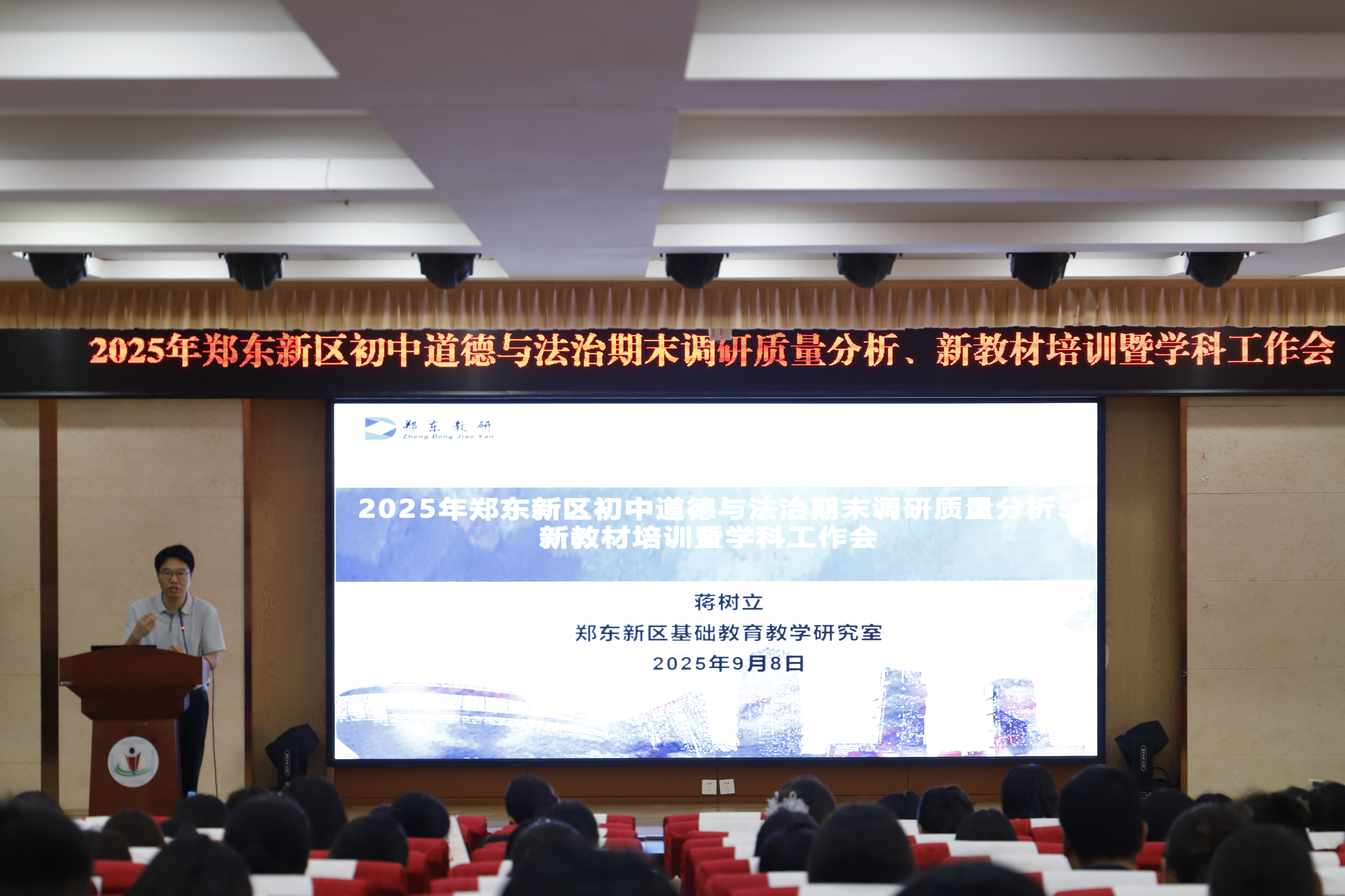 为助力教师理解道德与法治新教材逻辑结构、核心内容的新变化,根据学情调研数据诊断教学短板,安排本学期教研工作计划,促进课堂教学方式革新,提升教学策略的实效性。2025年9月8日下午,郑东新区初中道德与法治期末质量分析、新教材培训暨学科工作会在郑东新区外国语学校东校区召开。