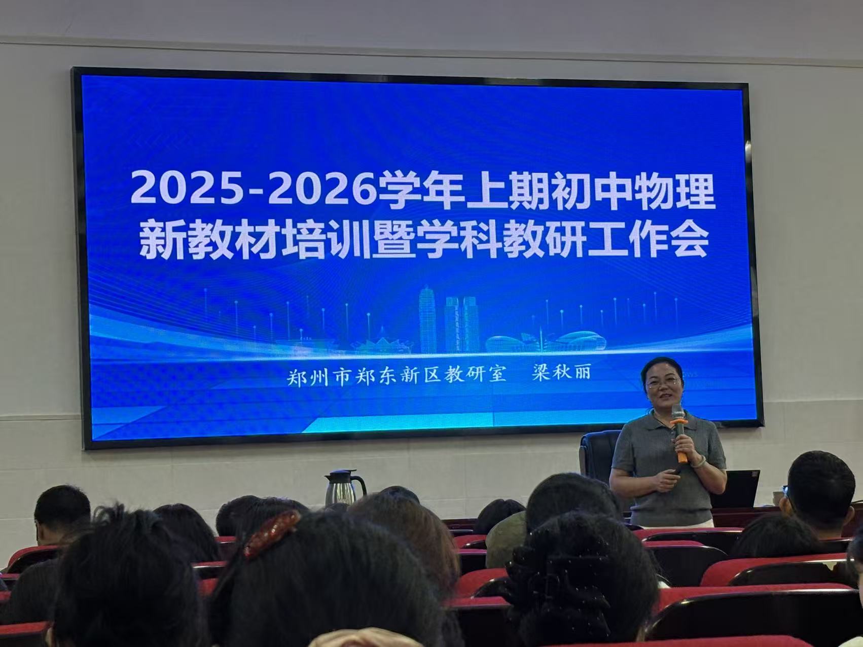 为助力教师精准把握初中物理新教材编写理念,切实提升教材深度解读能力与课堂实践转化水平,推动物理课程核心素养在教学场景中有效落地,9月10日,郑东新区初中物理新教材培训暨新学期教研工作会在郑州市第九十六中学召开。本次活动由物理教研员梁秋丽主持,郑东新区全体初中物理教师参会。