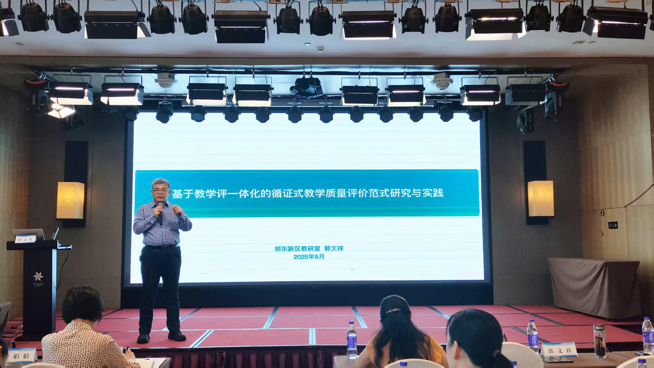 2025年9月9日,为深入贯彻落实中共中央、国务院《深化新时代教育评价改革总体方案》精神,全面破解义务教育阶段教育评价痛点,提升教师评价专业能力,河南省义务教育阶段区域教育评价实施经验交流会在开封市举行。郑州市郑东新区基础教育教学研究室党支部书记郭文祥以《基于教学评一体化的循证式教学质量评价范式研究与实践》为题进行区域经验分享与交流,为全省教育评价改革提供了可复制、可推广的实践样本。