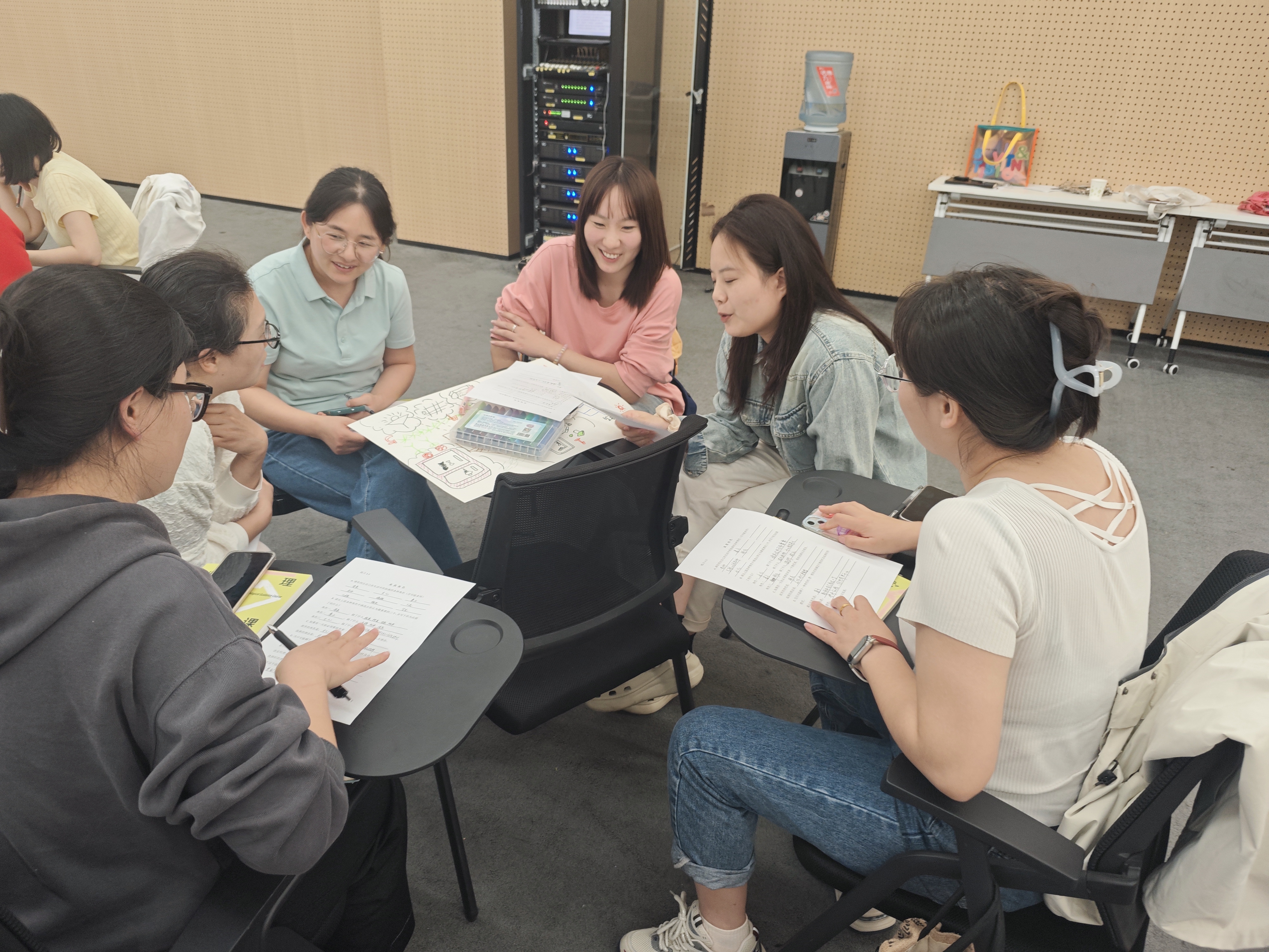 接下来,为关爱教师心理健康,缓解工作压力,提升团队的创造力与协作力,本次活动特别设置了丰富多彩的教师团体辅导环节。在王娟老师的带领下,教师们全身心投入到 “接力绘画新奇的‘家’” 活动中。大家以小组为单位,接力在画纸上勾勒心中 “家” 的模样,从线条勾勒到色彩填充,每一笔都承载着对温暖与归属感的向往,在协作与交流中拉近了心灵距离。随后的“真我角色”活动中,王娟老师引导教师们梳理在生活中扮演的各种角色,通过层层梳理与同伴启发,教师们逐渐明晰哪些角色是内心真正珍视的核心,哪些角色在忙碌中被过度消耗,在深度自我对话中完成了对角色优先级的重新定位,也收获了平衡自我与责任的天平。