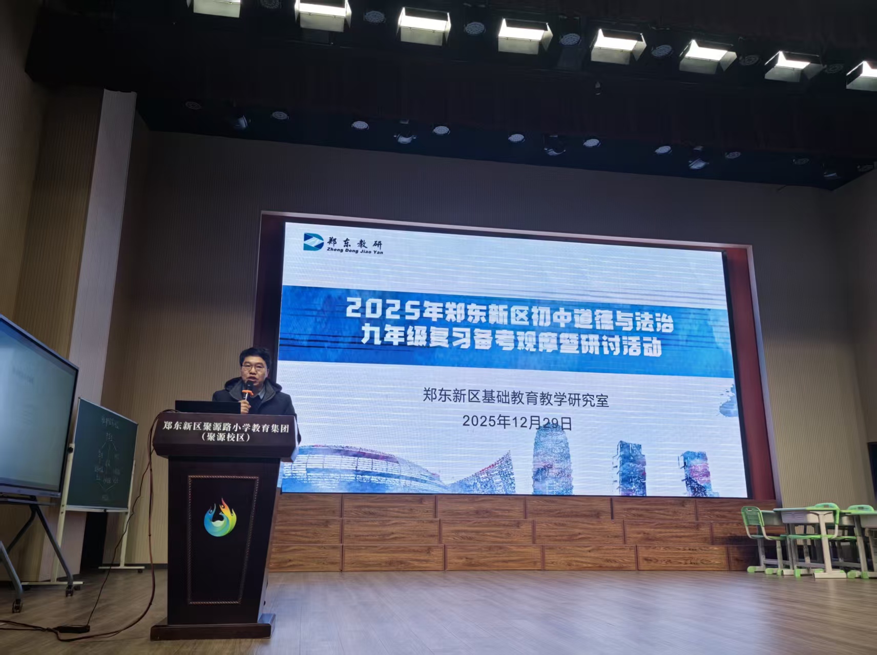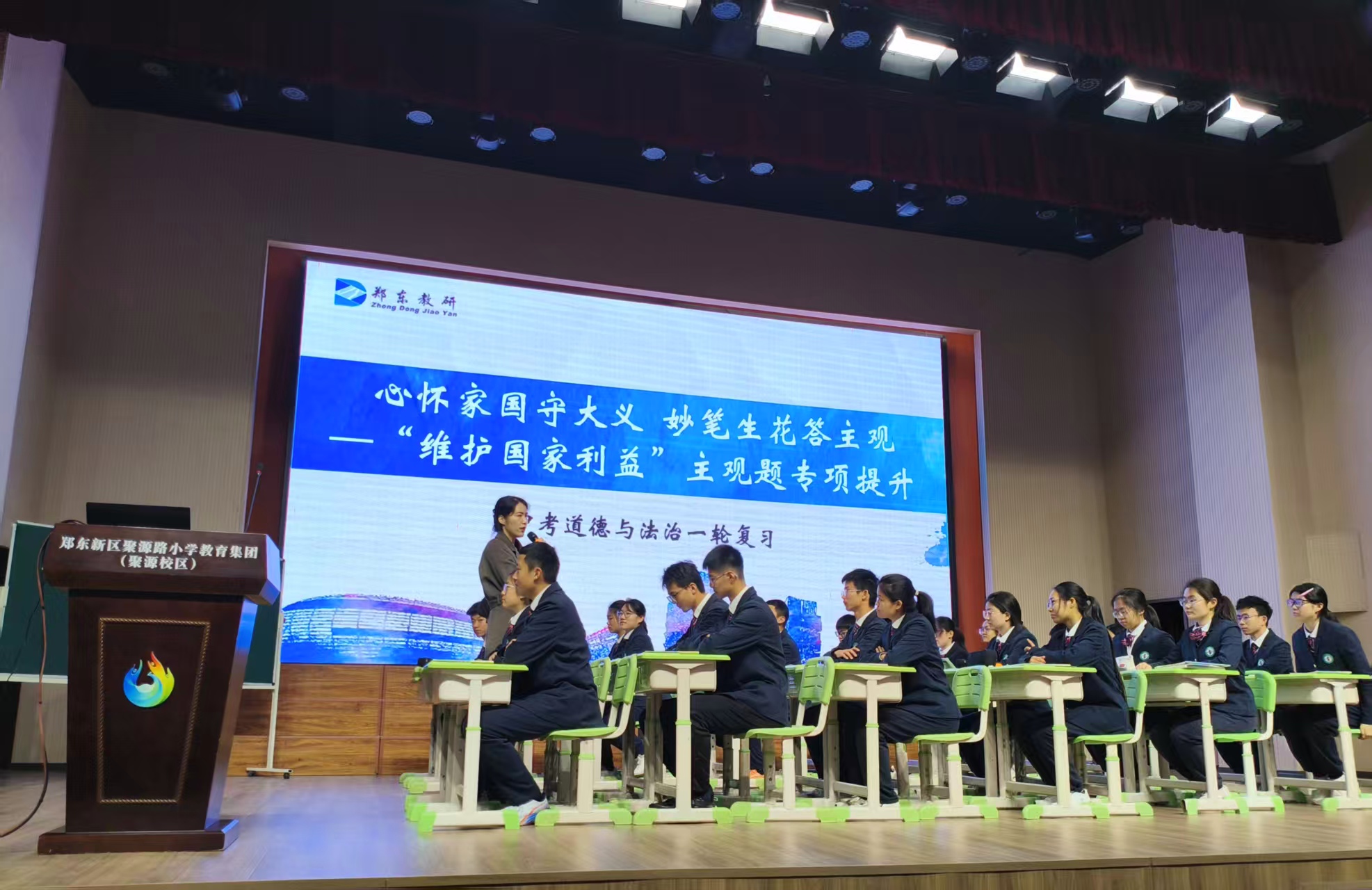 为精准把握九年级道德与法治中考复习方向,优化备考策略,提升复习教学实效,2025年12月29日下午,郑东新区初中道德与法治九年级复习备考观摩暨研讨活动在郑州市第八十六中学成功举行。郑东新区基础教育教学研究室初中道德与法治学科教研员蒋树立老师、郑州市第八十六中学王秋阁副校长、教务处刘冰茹主任,以及郑东新区全体九年级道德与法治教师齐聚一堂,通过课堂观摩、经验分享、专题研讨等形式,共探中考备考新思路、新方法。