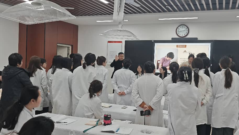 开班仪式上,张二磊老师系统讲解了庹氏艾灸的历史渊源、技术特点及临床应用价值。他介绍,庹氏艾灸源于民间,历经数代传承,以“温通经络、扶正祛邪”为核心理念,注重辨证施灸、因人施治,在治疗颈肩腰腿痛、慢性疲劳及亚健康调理方面具有独特优势。作为市级非遗传承人,张二磊多年来致力于艾灸技艺的挖掘、整理与推广,始终坚持“以技传人、以文化人”的理念。