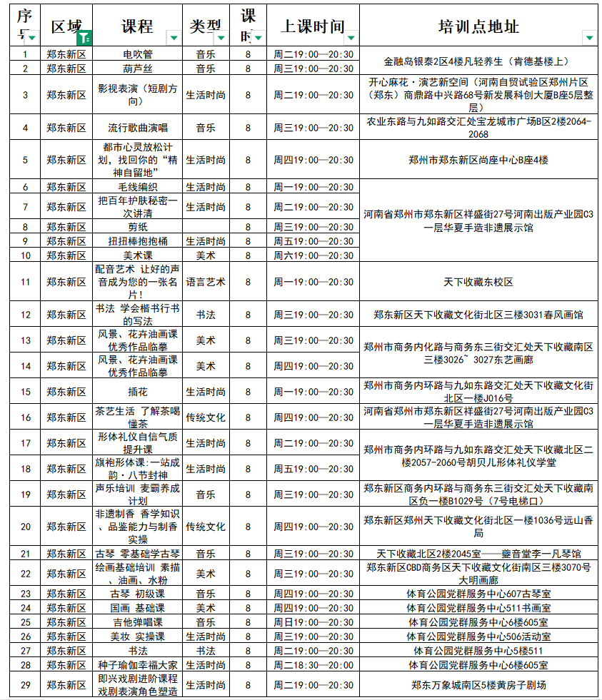 招生对象:18—60岁身心健康的郑州市民