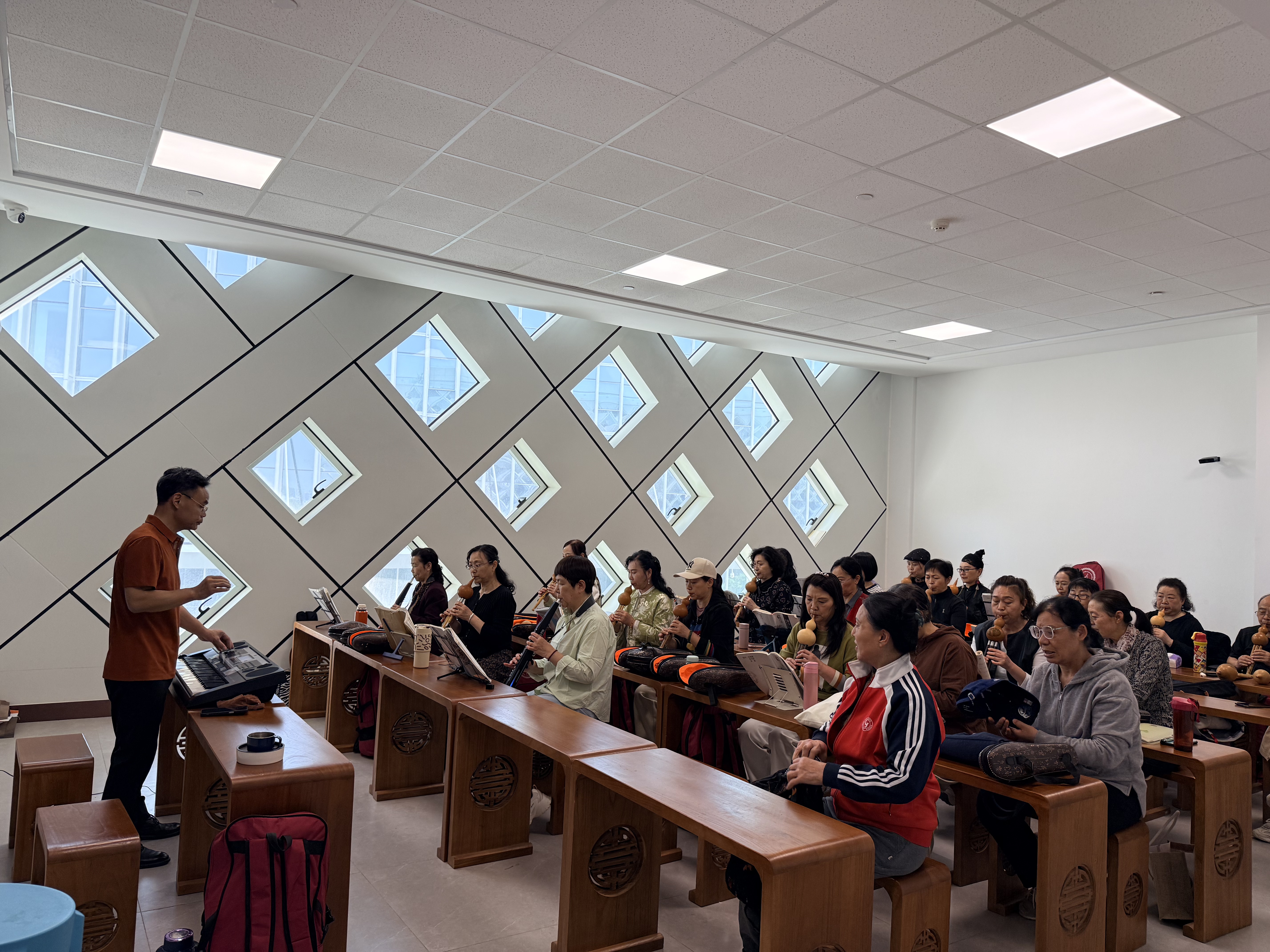 本次培训同步启动四大特色艺术团招新与教学工作,各艺术团课程设置精准、教学方向明确。丝丝入扣艺术团主打葫芦丝与电吹管专业培训,课程涵盖基础乐理知识、乐器吹奏技巧、经典曲目演绎、团队合奏排练等内容,由资深管乐教师循序渐进开展教学,助力学员夯实基础、提升演奏水平。