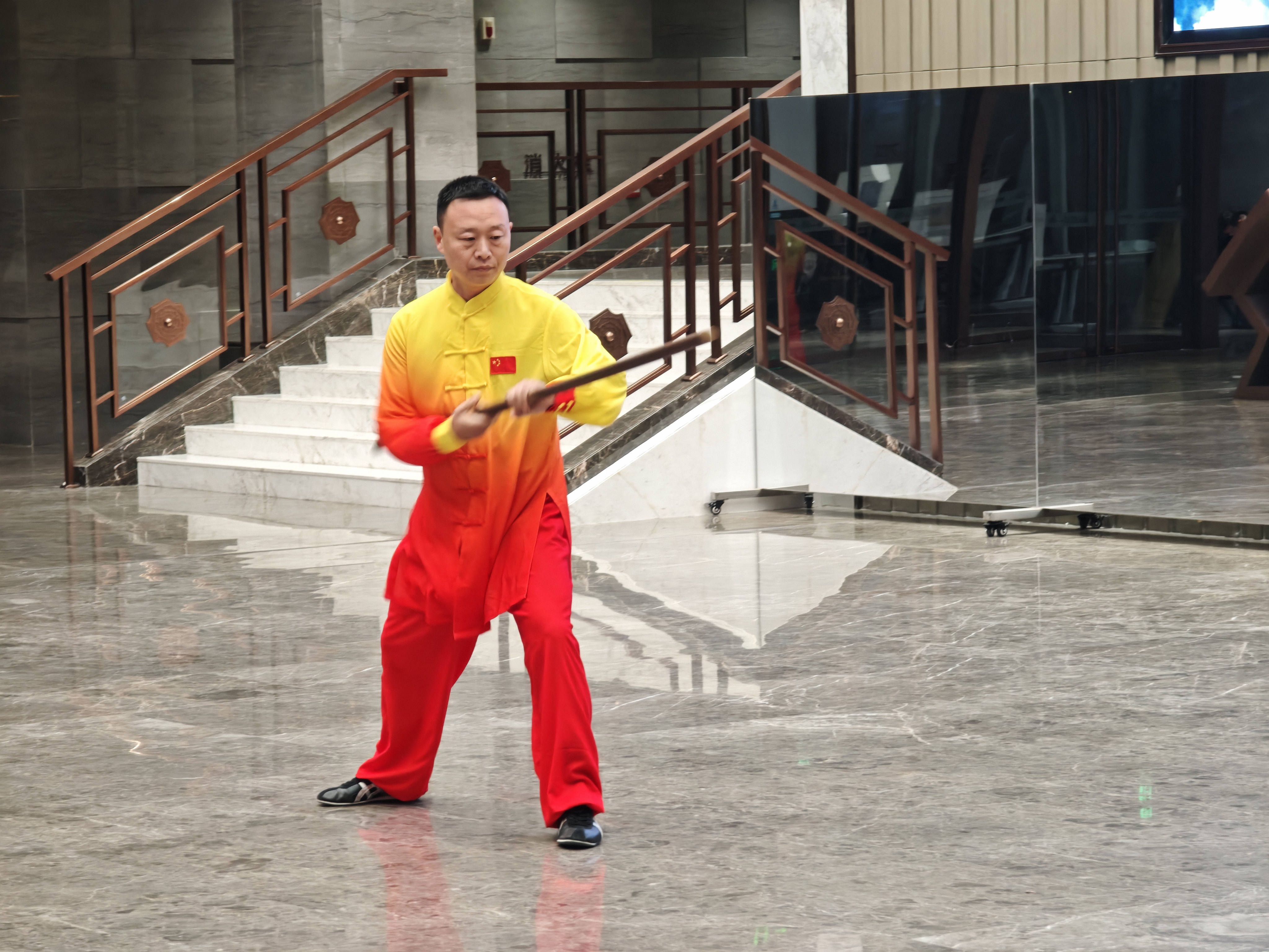 随后进行的个人及小组展演更是亮点纷呈。和式太极剑表演,剑光闪烁,身形飘逸,展现了太极器械的轻灵与精准;和式太极棍的展示则劲力饱满,虎虎生风,凸显了太极功夫的沉稳与刚健。一系列精彩的节目,不仅让现场观众大饱眼福,更深刻展现了和式太极拳作为国家级非物质文化遗产的独特魅力与文化内涵。