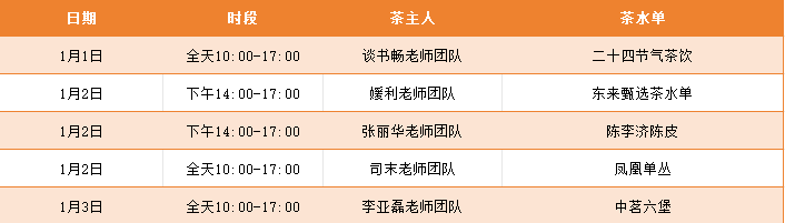 「茶水铺子」每日不同主题:谈书畅老师的二十四节气茶、单丛的醇厚、六堡的陈韵、陈皮的甘香……每一杯都是时间的礼物。静坐一隅,品茶听风,遇见冬日里最温暖的对话。